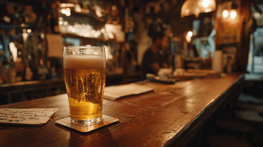 Hij kijkt om zich heen… het is druk. De barman is afgeleid, en een paar gasten zien eruit alsof ze niet vies zijn van een gratis slokje. Hij wil geen risico nemen dat iemand aan zijn biertje zit terwijl hij weg is.
