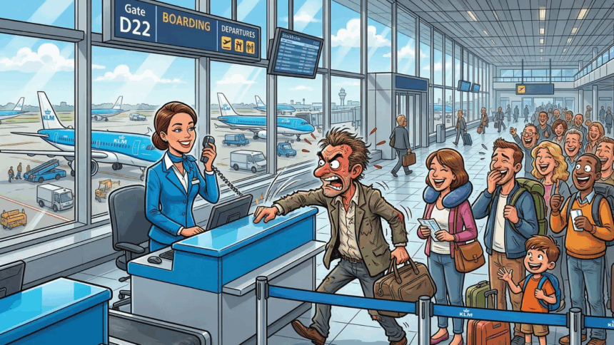 Een drukke KLM-vlucht vanaf Schiphol was plotseling geannuleerd.