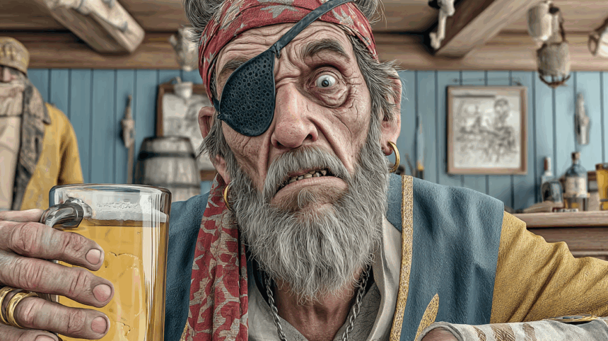 De piraat nam een slok van zijn bier, zuchtte diep en zei: