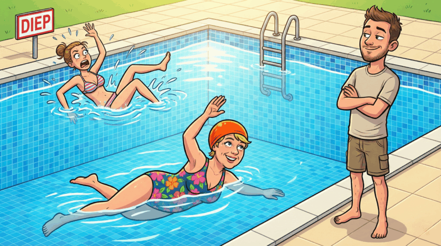 Ik wil mijn jongen niet in zo’n lastige situatie brengen… dus leer ik maar gewoon zwemmen.”