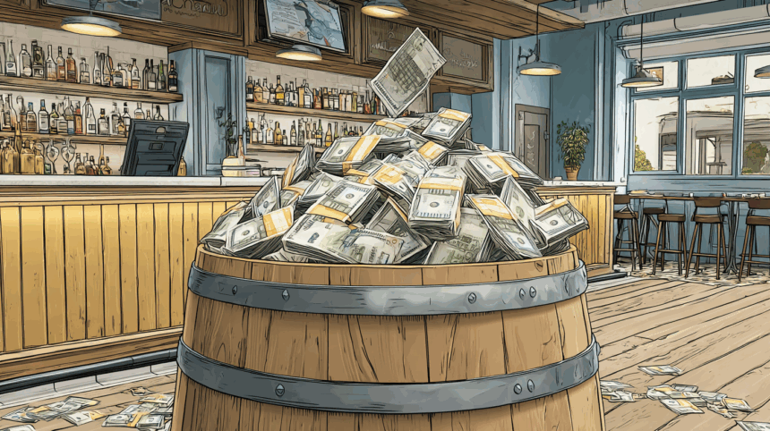 “Eerst betalen,” zegt de barman streng. “Regels zijn regels.”