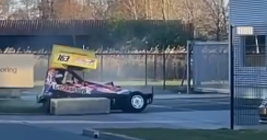 Je auto testen voor de cross is voor veel liefhebbers een spannend moment, zeker als de adrenaline al voor de wedstrijddag door de aderen giert. Maar soms eindigt zo’n onschuldig proefritje net even wat anders dan je vooraf had bedacht. Zoals hier te zien, waar een enthousiasteling alvast de motor warmdraait — midden in de woonwijk!
