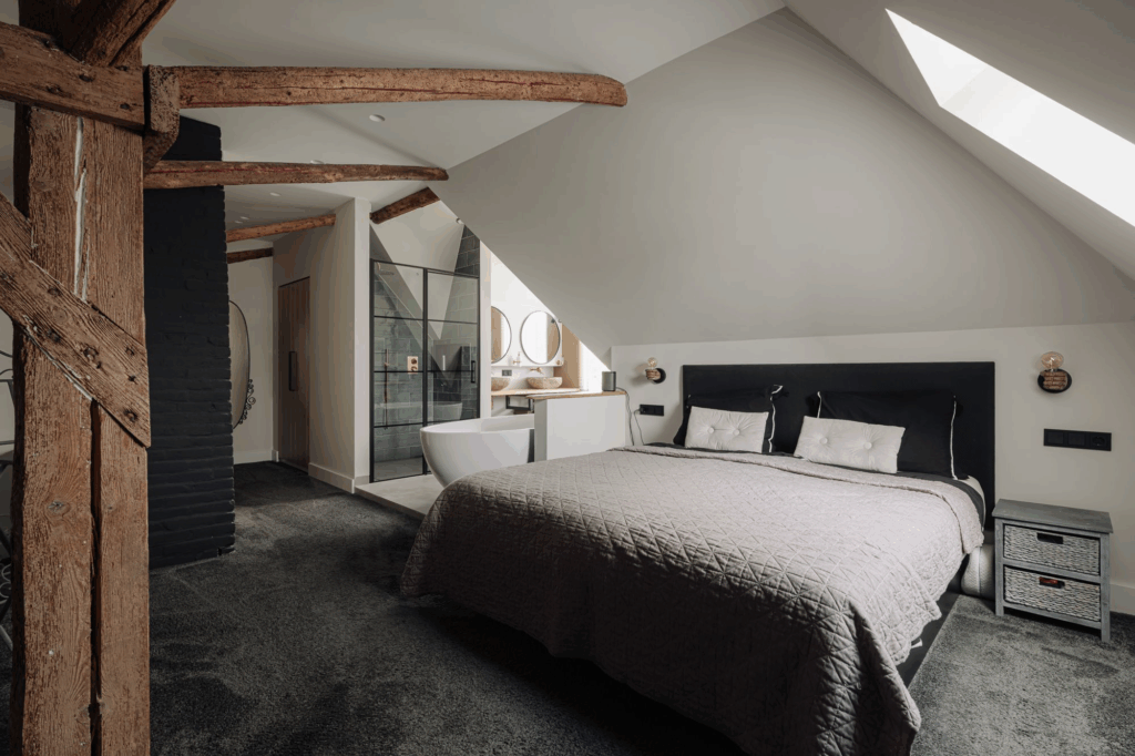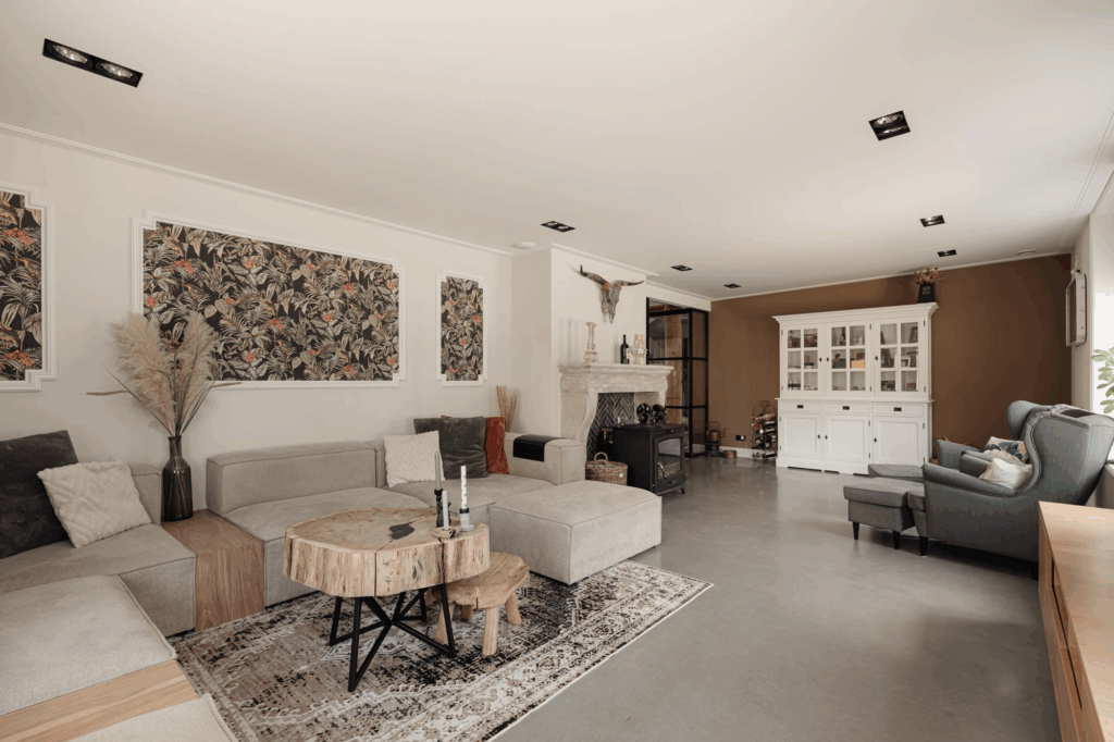 Achter de traditionele stolpvorm schuilt een compleet verbouwde woning met zeven slaapkamers, vier badkamers en een zee van ruimte. Alles is vernieuwd tussen 2019 en 2020, inclusief gevel, dak en isolatie. De duurzaamheid zit ‘m in de details: 29 zonnepanelen, een zonneboiler, een WTW-systeem en een gezellige pelletkachel maken dit huis energiezuinig én comfortabel.