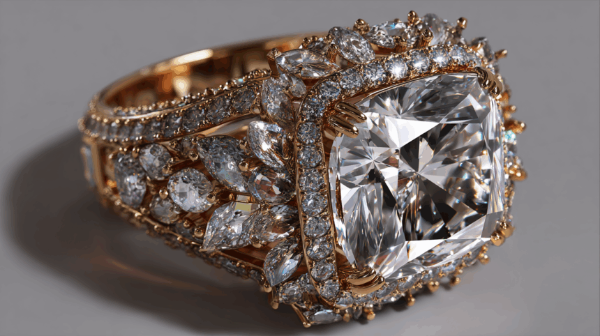 De juwelier verdwijnt naar achteren en komt terug met een fonkelende ring van €25.000.