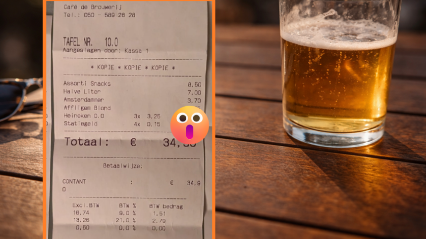 Een biertje drinken op het terras hoort ontspannen te zijn. Maar voor sommige bezoekers liep dat anders. Een kassabon van Cafe De Brouwerij in Groningen die op Reddit werd gedeeld, zorgde namelijk voor flink wat discussie. Daarop stond statiegeld op terras apart vermeld, iets wat de meeste mensen niet gewend zijn.