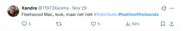 De nieuwste aflevering van The Tribute heeft voor flink wat opgetrokken wenkbrauwen gezorgd. Waar het programma normaal draait om overtuigende imitaties van grote artiesten, liep het optreden van de Fleetwood Mac-tributeband dit keer nét even anders. In The Tribute: Battle of the Bands was het vooral de jury die voor verwarring zorgde, want hun beoordeling kwam totaal niet overeen met wat veel kijkers thuis hoorden. En dat leidde – uiteraard – tot een golf aan reacties online.