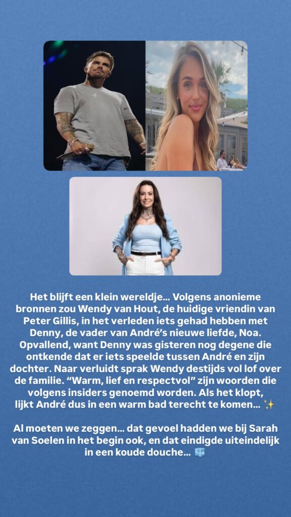 Volgens insiders zou Wendy van Hout in het verleden warme woorden hebben gesproken over Denny en diens familie. Termen als “lief, warm en respectvol” vielen, en het lijkt er dus op dat André in een harmonieus nest terechtkomt. Toch blijft het internet sceptisch. Zo werd er al een vergelijking gemaakt met André’s eerdere relatie met Sarah van Soelen, die ook rooskleurig begon, maar eindigde in chaos.