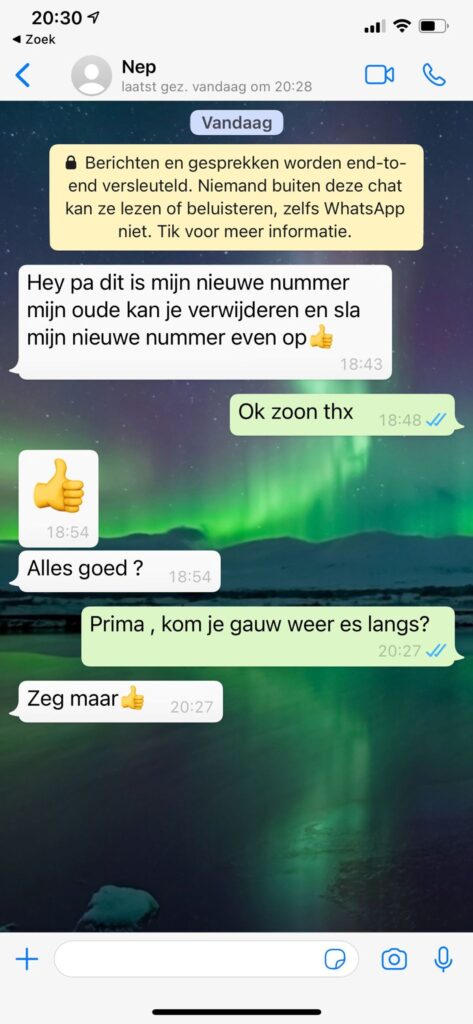 Wat begint als een klassiek appje met “Hey pa dit is mijn nieuwe nummer” verandert al snel in een hilarisch toneelstuk. Een alerte vader besluit niet meteen in de val te trappen, maar doet alsof hij nergens iets doorheeft. In plaats van argwaan laat hij de Whatsapp oplichter rustig binnen in zijn digitale leven en reageert hij alsof hij écht met zijn zoon appt.
