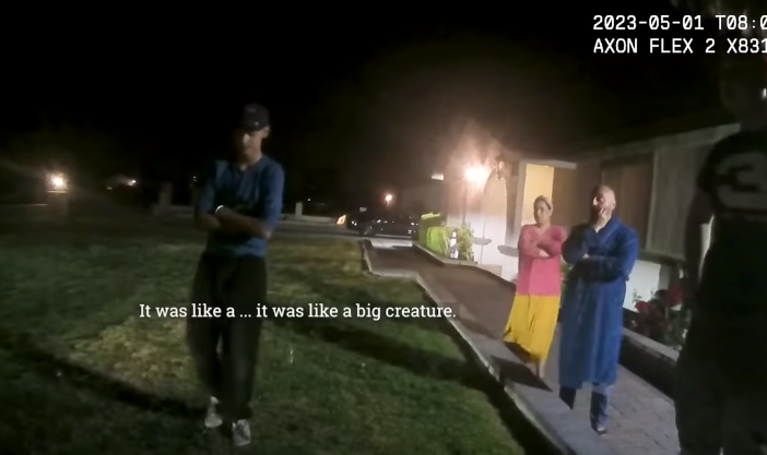 Minder dan 40 minuten na die eerste waarneming pleegde een man die ongeveer 80 mijl van Area 51 woont een nogal huiveringwekkend telefoontje. Nadat hij 911 had gebeld, beweerde de man dat er twee onbekende entiteiten in zijn achtertuin waren, kort nadat hij en zijn familie een soortgelijk object vanuit de lucht hadden gezien. “Er staat een persoon van 2,5 meter lang naast en een andere zit in ons … en hij heeft grote ogen en hij kijkt naar ons – en hij is er nog steeds”, vertelde de doodsbange man aan de politiepost. Zoals je zou verwachten, was de politie een beetje geschokt en zelfs in de war door de hele affaire, zoals bleek uit de audio en foto’s die op hun bodycams waren vastgelegd.