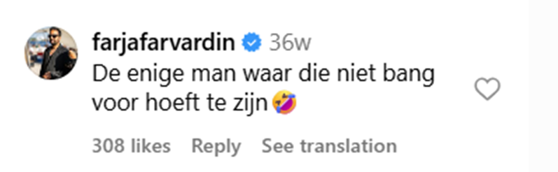 Op social media reageren veel mensen dat de video “niet zo goed is verjaard”. De opmerking van Farja onder de originele post – “De enige man waar die niet bang voor hoeft te zijn” – werd toen gezien als een leuke toevoeging, maar wordt nu door sommige volgers als ongepast ervaren, gezien de breuk.