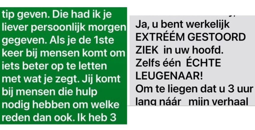 De reactie van de schoonmaakster laat weinig aan de verbeelding over. In plaats van een professionele reactie volgt een tirade vol hoofdletters, beschuldigingen en beledigingen. Zo noemt zij de klant onder meer: “WERKELIJK EXTREEM GESTOORD ZIEK in uw hoofd” en beschuldigt ze haar van liegen over de duur van het bezoek. Ook benadrukt ze herhaaldelijk dat ze “niet eens drie uur” aanwezig zou zijn geweest en dat ze keihard gewerkt heeft, inclusief ramen wassen en het schoonmaken van de voordeur. De toon slaat volledig om van werkgerelateerd naar persoonlijk en aanvallend.