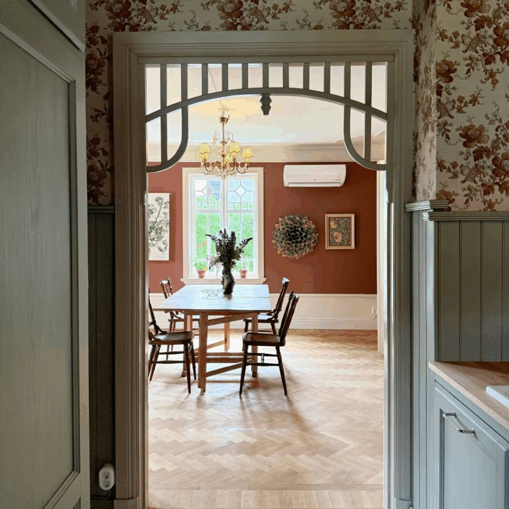 Wie binnenstapt in dit huis in Zweden, merkt direct dat hier met zorg en respect voor het verleden is gewerkt. Elk vertrek voelt als een klein kunstwerk, waarin ambachtelijke details uit het begin van de twintigste eeuw naadloos samengaan met hedendaagse aanpassingen. Denk aan originele houtstructuren, zachte kleuren en lichtinval die elk seizoen tot zijn recht laat komen. Het resultaat is een woning die rust, warmte en karakter uitstraalt.