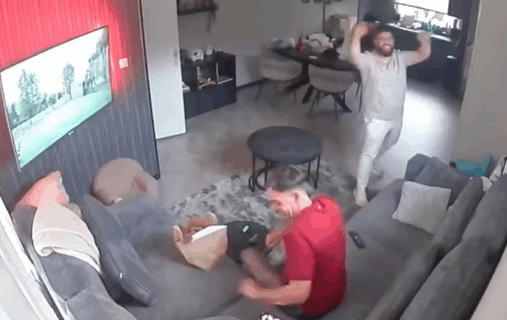 Met een beleefde houding en zichtbaar ongemak probeerde de bezorger de man wakker te krijgen. Eerst met zijn stem, daarna met een tikje. Toen pakte hij de afstandsbediening van tafel en tikte hem zachtjes aan. De beelden, vastgelegd door een beveiligingscamera in de woonkamer, laten een situatie zien die ergens hilarisch is, maar ook respect afdwingt.