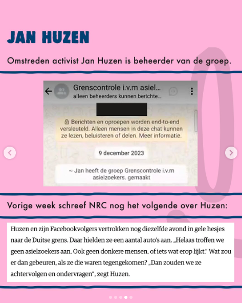 In een eerder interview verklaarde Huzen: “Ook geen donkere mensen, of iets wat erop lijkt? Dan zouden we ze achtervolgen en ondervragen.” Zijn betrokkenheid maakt duidelijk dat deze vorm van burgerlijke grensbewaking allesbehalve onschuldig is.