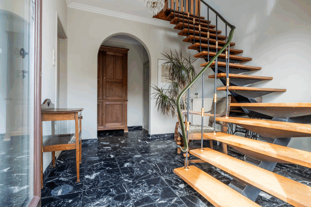 Deze villa in België biedt alles wat je maar kunt wensen. Zodra je binnenstapt, voel je de grandeur: een royale hal met natuurstenen vloer, een sfeervolle woonkamer met open haard en airconditioning, en een lichte tuinkamer met uitzicht op de tuin. De halfopen keuken is voorzien van alle gemakken – van oven en combi-oven tot vaatwasser en koelkast.