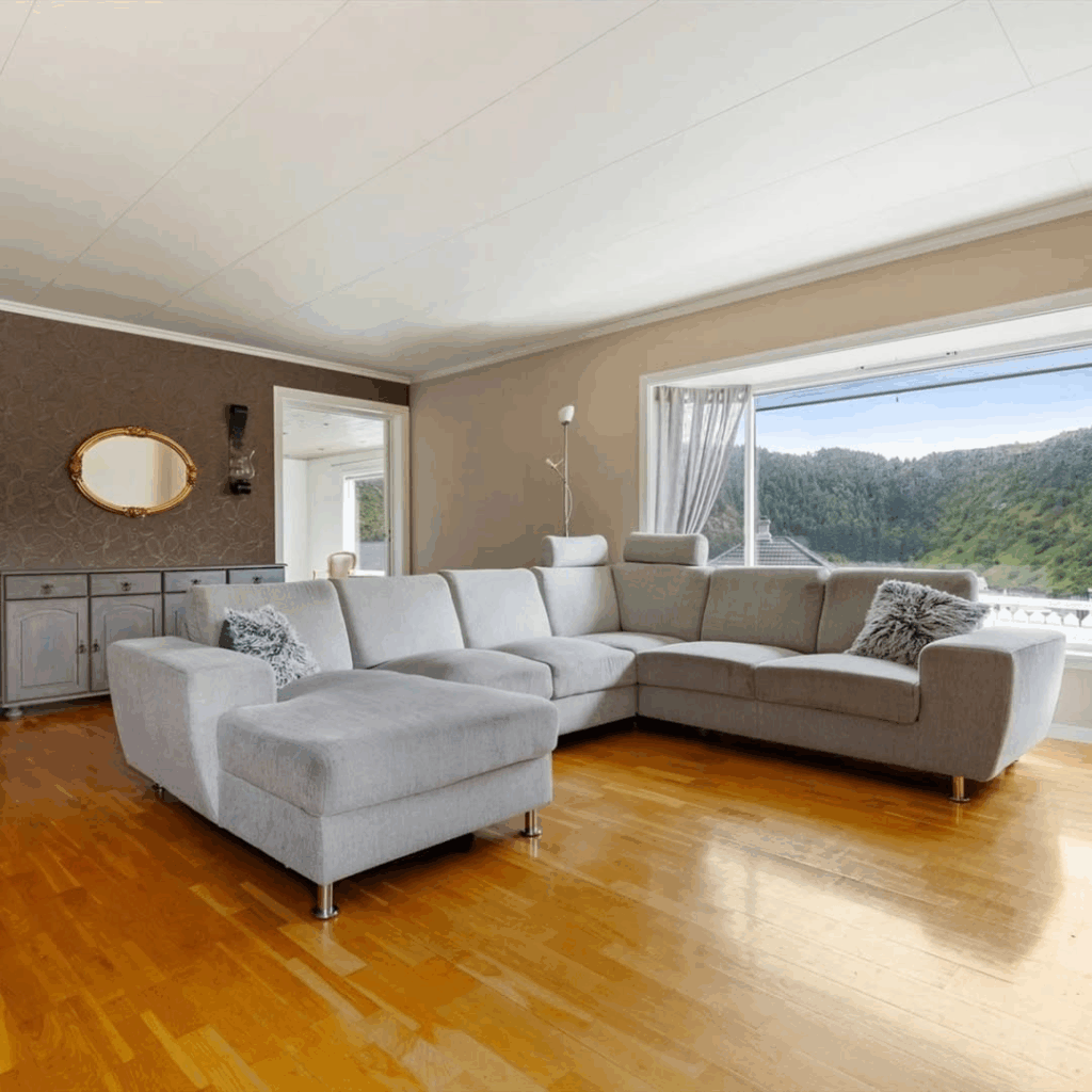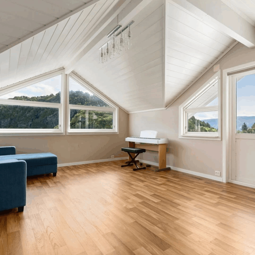 Dat is een bedrag waarvoor je in Nederland amper een klein appartement kunt kopen. Toch krijg je hier een volledig vrijstaand huis, omgeven door bergen, zee en frisse lucht. De woning is in uitstekende staat onderhouden en straalt die typische Scandinavische eenvoud uit: strak, warm en tijdloos. Binnen vind je lichte ruimtes met grote ramen die het zonlicht prachtig vangen. De woonkamer biedt een panoramisch uitzicht over het Noorse landschap, terwijl de westelijke ligging zorgt voor onvergetelijke zonsondergangen.