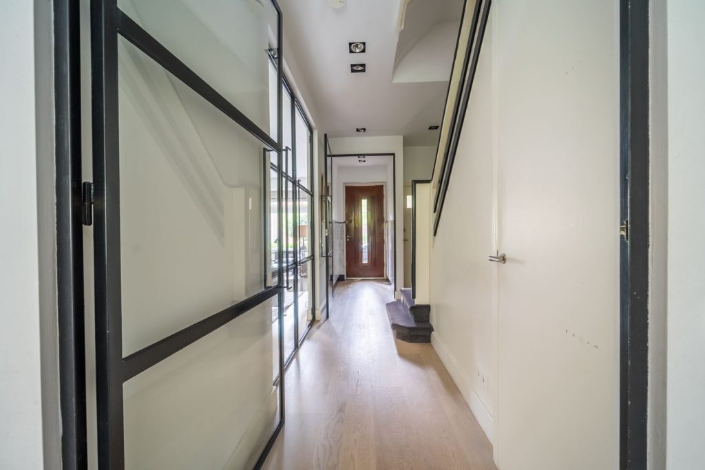 Bij binnenkomst via de prachtige voordeur, bereikt men de hal na het passeren van een tochtportaal met fraaie deuren voorzien van glas en stalen kozijnen. In de hal bevindt zich een gastentoilet. Via openslaande deuren komt men in de ruime woonkamer en de luxe open woonkeuken, die is uitgerust met alle denkbare inbouwapparatuur. Aan de achterzijde is een mooie uitbouw met een stalen achterpui en openslaande deuren naar de tuin. De achtertuin is goed onderhouden en beschikt over een karakteristiek stenen tuinhuis uit de jaren ’30. Aan de voorzijde van het huis bevindt zich de woonkamer met een charmante erker en een open haard. Door het hele huis ligt een prachtige, goed onderhouden eiken planken parketvloer. Het souterrain is bereikbaar via een vaste trap en biedt een bioscoop/speelruimte, een logeerkamer en veel bergruimte.