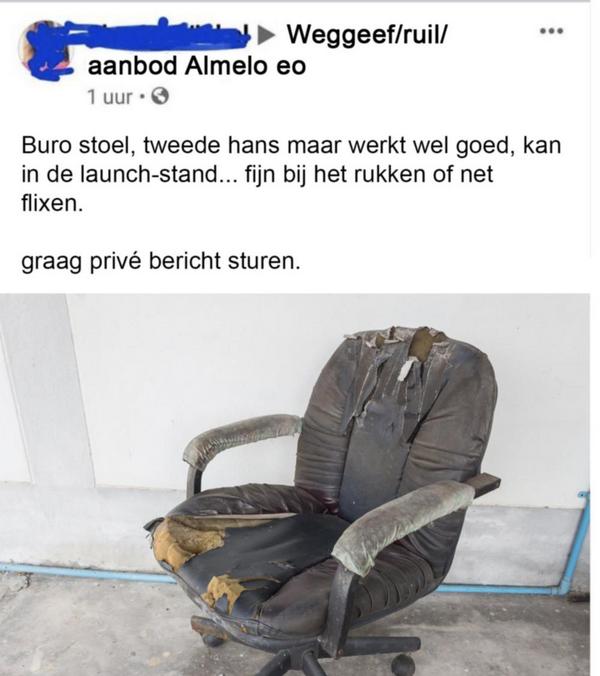 Alsof het nog niet gek genoeg was, verschijnt er ook een elektrische babystoel met USB, muziek en “andere functies” voor €125. Alsof je baby straks een dj-set moet draaien. Het laat zien dat werkelijk alles wordt aangeboden, zolang iemand denkt dat het een goed idee is. En precies daarom blijven dit soort advertenties viraal gaan: ze bewijzen keer op keer dat Facebook Marktplaats dé plek is waar een tik van de molen geen uitzondering is, maar de standaard.