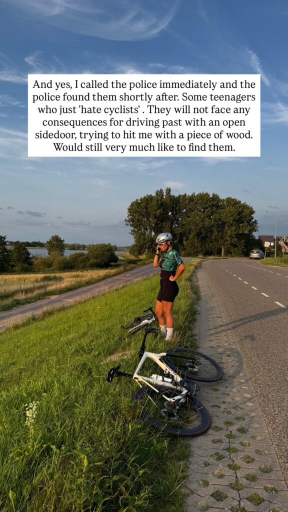 Wat voor wielrenster Puck Moonen begon als een rustige trainingsrit, eindigde in een angstaanjagende confrontatie op de openbare weg. De ex-profrenster en influencer werd afgelopen weekend in de buurt van Opheusden, Gelderland, opzettelijk belaagd door een groep tieners in een zwart bestelbusje. Volgens Moonen probeerden ze haar zelfs met een stuk hout te raken terwijl ze haar met open schuifdeur passeerden. De beelden van het voertuig en haar reactie op het incident verschenen kort daarna op Instagram.