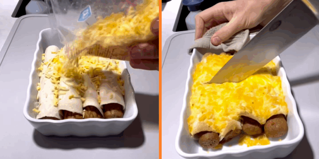 Het recept is verrassend eenvoudig en vereist slechts een paar basisingrediënten: frikandellen, tortilla wraps, curryketchup, mayonaise, gesnipperde ui en geraspte kaas. De inspiratie komt van de Instagram-pagina @snacktijd, die bekendstaat om creatieve snackideeën, waar het recept meer dan 10.000 likes heeft verzameld. In de video zie je stap voor stap: saus en ui op de wrap, frikandel erop, strak oprollen, in een ovenschaal leggen, kaas erover en afbakken tot goudbruin.